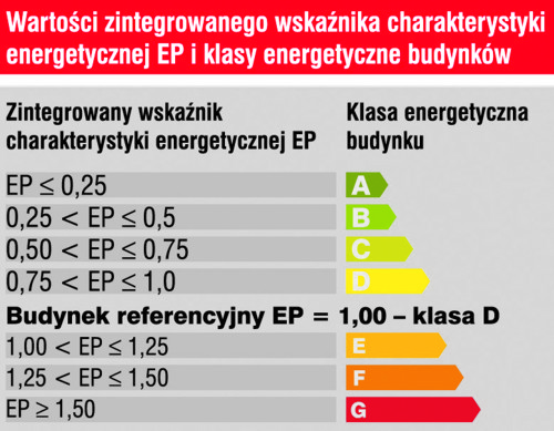 Będzie to dokument określający klasę energetyczną obiektu. Przewiduje się, że w Polsce ocena efektywności energetycznej budynku będzie polegać na określeniu wskaźnika zintegrowanej charakterystyki energetycznej - EP, a na jego podstawie nastąpi przyporządkowanie obiektowi klasy energetycznej - od A (najwyższej) do G (najniższej). Dla porównania - tzw. budynek referencyjny, czyli budynek spełniający minimum aktualnych wymagań, będzie miał wskaźnik EP=1 i znajdzie się w klasie energetycznej D.